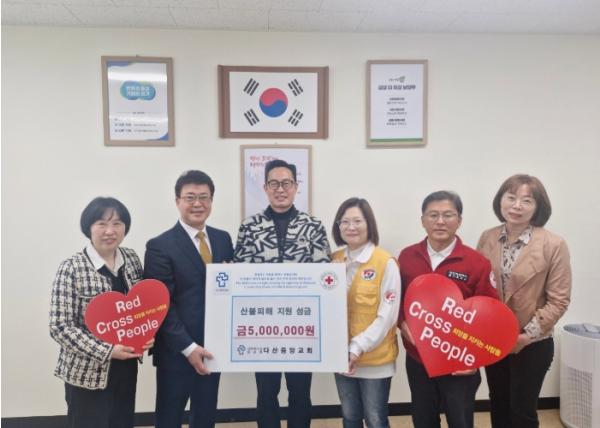 [종합뉴스채널, 최한솔기자] 남양주시는 지난 16일, 다산1동에 소재한 다산중앙교회가 산불 피해 주민을 돕기 위해 대한적십자사 경기지사에 성금 500만 원을 전달했다고 밝혔다.