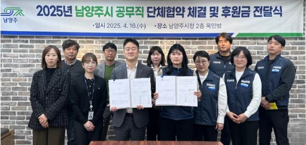 [종합뉴스채널, 최한솔기자] 남양주시는 16일, 시청 목민방에서 공무직 근로자 노동조합인 민주노총 남양주시지회와 ‘2025년 공무직 단체협약 체결식’을 개최했다.