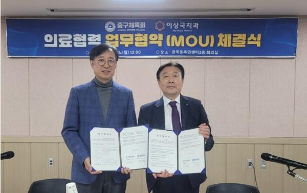 심재철 중구체육회장은 “이번 업무협약으로 100세 시대에 중요한 치아 건강을 위한 양질의 치아 의료 서비스를 제공하여 중구 체육인들의 건강한 삶과 활력있는 생활을 지키는데 기여할 수 있을 것으로 기대한다”라고 소감을 밝혔다.