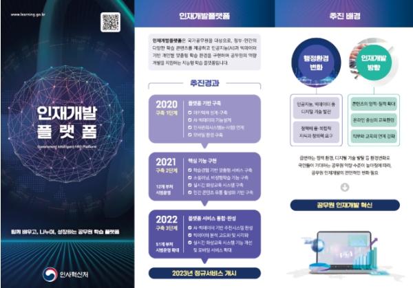 인재개발플랫폼은 정부와 민간의 다양한 자료를 온라인으로 볼 수 있는 학습 중추(허브)로 인공지능과 빅데이터를 기반으로 맞춤형 학습을 지원한다.