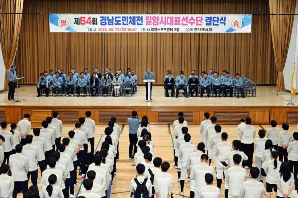 제64회 경남도민체육대회는 오는 5월 2일부터 5일까지 4일간 진주시 일원에서 개최되며, 밀양시는 30개 종목에 627명(선수 455명, 임원 172명)의 선수단이 출전한다.