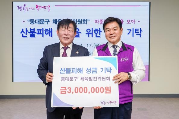 [종합뉴스채널, 박정혜기자] 서울 동대문구는 4월 17일 동대문구 체육발전위원회(회장 최영도)에서 영남권 산불 피해 복구를 위한 성금 300만 원을 기탁했다고 밝혔다.