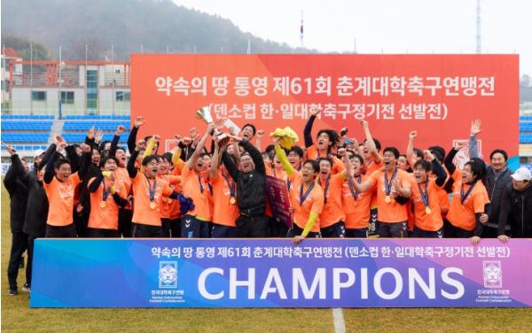 통영시는 ‘약속의 땅 통영 제61회 춘계대학축구연맹전’이 지난 2월 14일부터 3월 2일까지 17일간의 열전을 마치고 성공적으로 마무리됐다고 밝혔다.