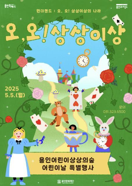 ‘오, 오! 상상이상’은 2022년부터 시작되어 올해 4주년을 맞은 용인의 대표 어린이날 행사로, 어린이 복합문화공간 용인어린이상상의숲에서 다양한 문화예술 프로그램을 선보여 매년 5,000명 이상의 어린이들에게 큰 사랑을 받았으며, 올해에는 ‘이상한 나라의 앨리스’를 콘셉트로, 초대형 인형극을 포함한 다채로운 공연과 이벤트, 체험 프로그램 등으로 어린이들에게 특별한 추억을 선사할 예정이다.