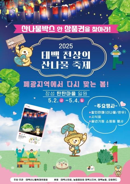태백시 관계자는 “다가온 봄, 사계절 축제 도시 태백에서 펼쳐지는 ‘2025 태백 천상의 산나물 축제’에 많은 관심과 방문 바라며, 다채롭고 빈틈없는 축제운영을 통해 모든 분들이 즐거운 시간을 보낼 수 있도록 최선을 다하겠다. 많이 방문하셔서 태백의 맛과 향을 즐겨주시기 바란다”고 전했다.
