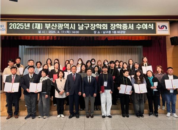 [종합뉴스채널, 김현성기자] 재단법인 부산광역시 남구장학회는 지난 17일 남구청 1층 대강당에서 2025년도 장학증서 수여식을 가졌다.