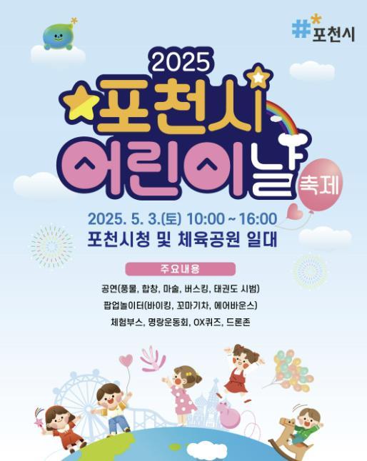 [종합뉴스채널, 김현성기자] 포천시가 오는 5월 3일 오전 10시부터 오후 4시까지 포천시청과 체육공원 일대에서 ‘2025년 포천시 어린이날 축제’를 개최한다.