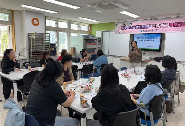 [종합뉴스채널, 박광덕기자] 대구남부교육지원청은 4월 23일 대구죽전초등학교 내 남부특수교육지원센터에서 특수교육 대상 학생 학부모 17명을 대상으로 ‘온맘 처음 부모교실’을 실시했다.