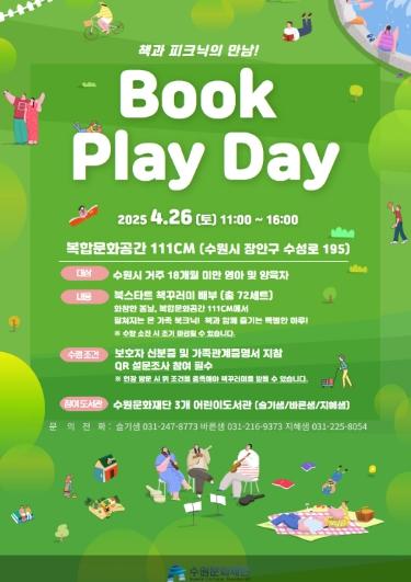 [종합뉴스채널, 김현성기자] 수원문화재단이 운영하는 3개 어린이 도서관(슬기샘, 지혜샘, 바른샘)은 오는 토요일, 복합문화공간 111CM에서 북 플레이 데이(Book Play Day)를 오전 11시부터 오후 4시까지 진행한다.