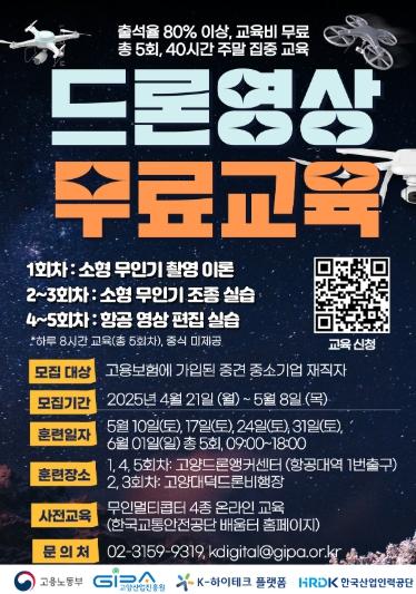 세부 교육과정은 ▲소형무인기(드론) 촬영 이론 교육 ▲소형무인기 조종 실습 ▲항공 영상 편집 실습 등으로 구성되어 있다.
