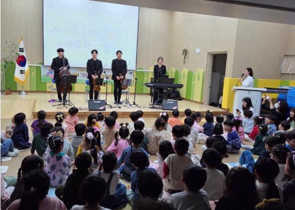 [종합뉴스채널, 박광덕기자] 4월 25일 성남 공립단설 고등나래유치원에서는 성남교육지원청에서 지원하는 [음악으로 그린 성남] 찾아가는 음악회가 진행됐다.