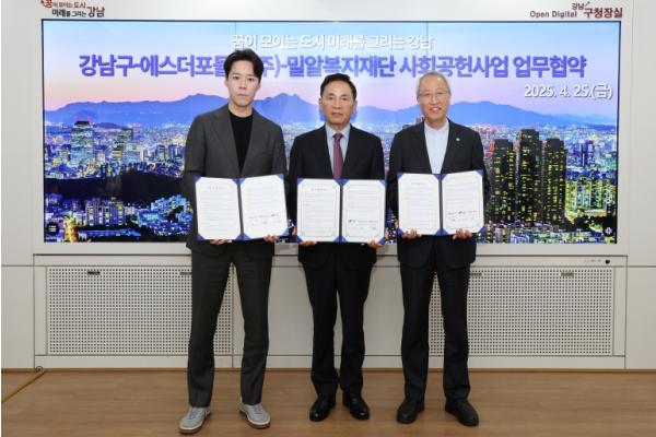 [종합뉴스채널, 홍희주기자] 꿈이 모이는 도시, 미래를 그리는 강남구가 4월 25일, 에스더포뮬러㈜, 밀알복지재단과 3자 업무협약을 체결하고 사회적고립 1인가구를 위한 민·관 협력 복지사업을 추진한다.