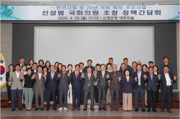 신성범 국회의원, 이승화 산청군수, 김수한 산청군의회 의장을 비롯해 신종철 도의원, 군의원, 간부 공무원 등 40여 명이 참석한 간담회에서는 지역 현안 사업과 2026년 주요 사업 정부 예산 반영 등에 대한 심도 있는 논의를 나눴다.