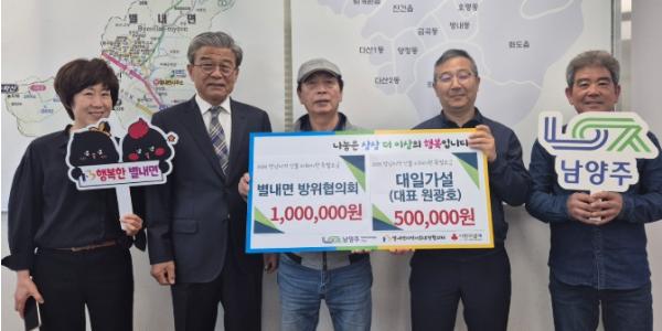 [종합뉴스채널, 최한솔기자] 남양주시 별내면은 28일 별내면 방위협의회와 대일가설이 영남 지역 산불 피해 주민을 지원하기 위해 후원금을 기탁했다고 밝혔다.