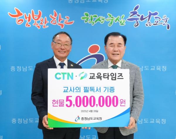 [종합뉴스채널, 박광덕기자] 충남교육청은 28일 CTN·교육타임즈로부터 총 500권, 5백만 원 상당의 도서를 기증받다고 밝혔다.
