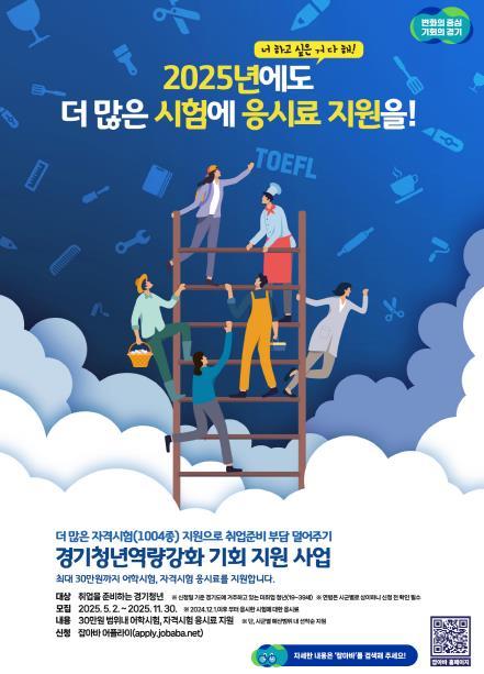 이인용 경기도 청년기회과장은 “응시료 지원은 미취업 청년들이 취업 준비에 대한 부담을 덜고 진로 설계를 돕는 필수 요소”라며 “올해 지원 분야가 확대된 만큼, 더 많은 청년이 이 기회를 통해 취업의 문을 열 수 있기를 기대한다”고 말했다.