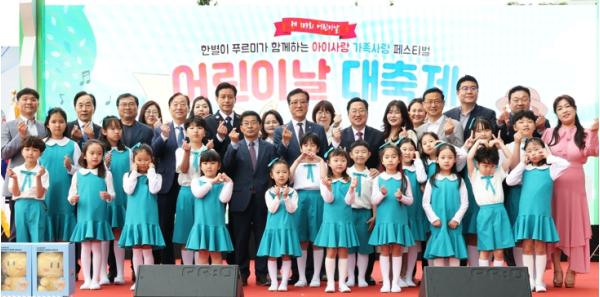 이날 행사에는 이장우 대전시장을 비롯해 조원휘 대전시의회 의장, 설동호 대전시 교육감 등이 어린이들과 함께하며 격려하며, 아동권리헌장 낭독, 모범어린이 및 아동복지 유공자 표창, 그림공모전 시상식, 어린이날 노래 제창 등이 진행됐다.