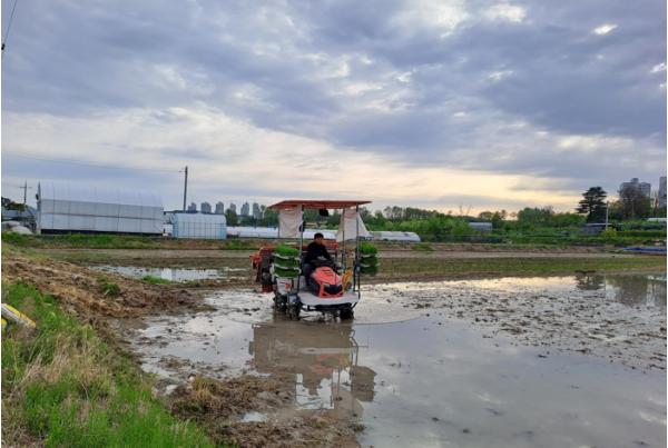 첫 모내기를 진행하는 김도경 농가는 약 24ha 규모의 논에서 벼를 재배하고 있으며, 농산물우수관리제도(GAP) 인증을 받은 우수 농가다. 조생종부터 중만생종까지 다양한 품종을 재배하고 있으며, (사)한국농촌지도자 대전시연합회 미작연구회 사무국장으로도 활동하고 있다.