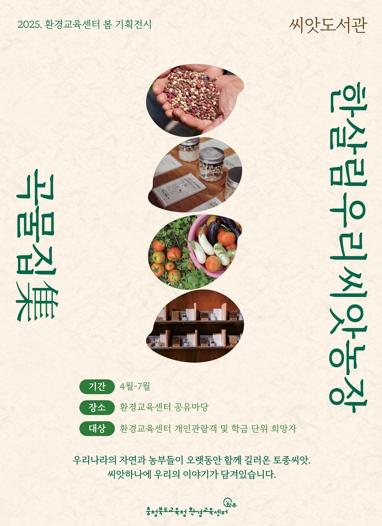 [종합뉴스채널, 박광덕기자] 충청북도교육청 환경교육센터와우는 2025년 봄 기획전시 '씨앗도서관: 곡물집×우리씨앗농장'을 운영한다.