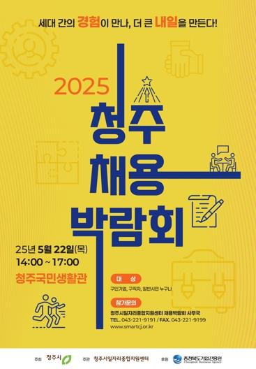 [종합뉴스채널, 신철훈기자] 청주시가 주최하고 청주시일자리종합지원센터가 주관하는 ‘2025 청주채용박람회’가 오는 22일 오후 2시 서원구 올림픽기념국민생활관에서 개최된다.