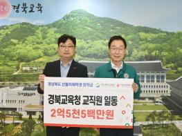 [종합뉴스채널, 박광덕기자] 경북교육청은 지난 3월 경북 지역에서 발생한 초대형 산불로 큰 피해를 본 5개 지역 학생들을 지원하기 위해, 교육청 소속 교직원들이 자발적으로 모은 성금 2억 5,500만 원을 경북사회복지공동모금회에 전달했다고 8일 밝혔다.