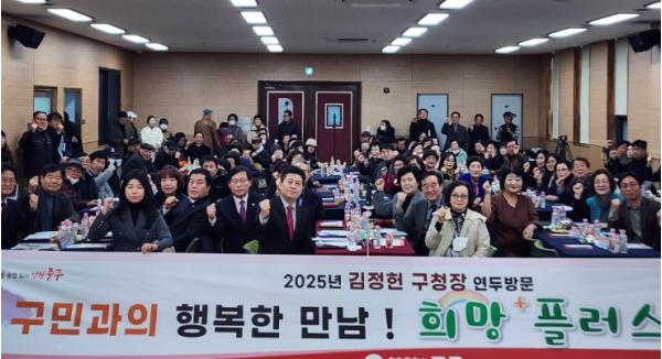 김정헌 인천 중구청장은 지난 2월 28일 율목커뮤니티센터에서 율목동 주민들과 함께 ‘2025년 연두 방문, 구민과의 행복한 만남! 희망 플러스 대화’의 시간을 가졌다.