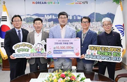 [종합뉴스채널, 김현성기자] 성남제일새마을금고와 삼척도원새마을금고 임직원은 12일 삼척시를 방문하여 고향사랑기부금 1,050만 원을 전달했다.