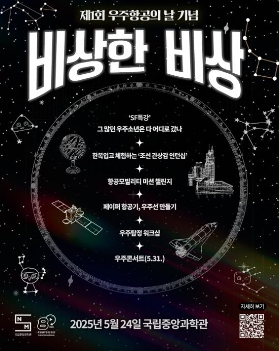 [종합뉴스채널, 최한수기자] 과학기술정보통신부 국립중앙과학관은 올해 처음 국가기념일로 지정된‘우주항공의 날(5.27)’을 맞아 과학문화행사 ‘비상한 비상’을 5월 24일 토요일 하루 동안 개최한다.