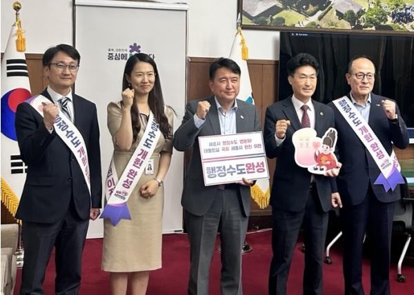또 행정수도 완성이 적힌 팻말을 들고 기념 촬영도 진행했다.