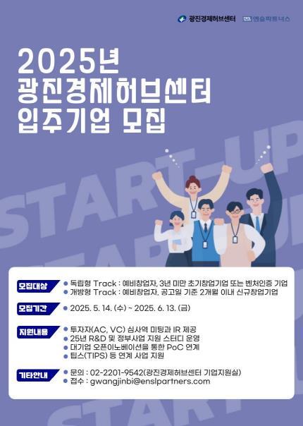 [종합뉴스채널, 박정혜기자] 광진구는 2025년 하반기 광진경제허브센터에 신규 입주할 창업기업을 오는 6월 13일까지 모집한다.