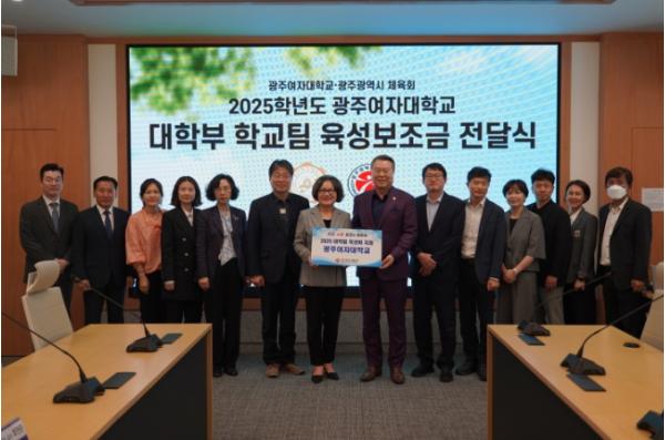 [종합뉴스채널, 김경석기자] 광주광역시체육회는 2025년 대학팀 학교운동부 육성지원 사업으로 광주여자대학교에 2,700만원을 지원하는 전달식을 개최했다.