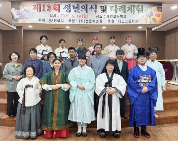 [종합뉴스채널, 김현성기자] 성년의 날인 지난 19일 정읍예명문화원(대표 박형숙)이 태인고등학교 재학생 100여 명을 대상으로 우리 전통 방식의 ‘성년의식’과 ‘다례체험’을 실시해 예비 성년들에게 특별한 경험을 선사했다.