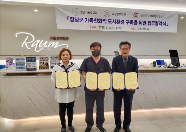 [종합뉴스채널, 김현성기자] 창녕군은 라움산부인과의원·산후조리원(대표원장 차성일), 창녕사람모여라(대표 오현정), 창녕군 도시재생지원센터가 인구소멸 대응과 농촌 산모의 안전한 출산을 위한 업무협약(MOU)을 체결했다고 20일 밝혔다.