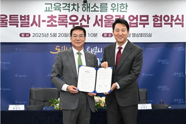 협약식에는 오세훈 서울시장, 황영기 초록우산 회장과 다자녀가구 학부모도 참석해, 교육 사각지대에 놓인 현실을 공유하며 서울런 확대에 대한 기대를 전했다.
