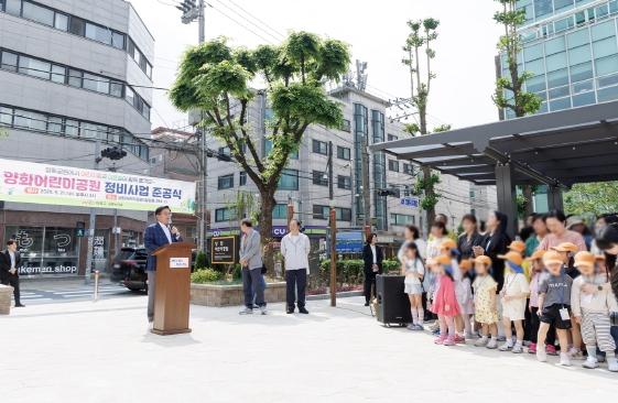 이날 준공식에는 박강수 마포구청장을 비롯해 백남환 마포구의회 의장, 지역 주민, 직능단체장 등 약 50여 명이 참석했으며, 공원녹지과장의 경과보고를 시작으로 테이프 커팅식과 기념촬영, 양화어린이공원 시찰 순으로 진행됐다.