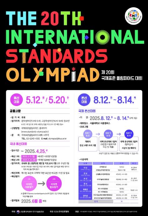 산업통상자원부 국가기술표준원은 세계 각국의 청소년들이 참가하는 표준화 경진대회인 '제20회 국제표준올림피아드'의 한국 대표팀 선발을 위한 신청을 받는다고 밝혔다. 국제표준올림피아드는 2006년 표준올림피아드로 시작하여 2015년 국제대회로 확대됐으며, 작년까지 누적 11,000여명의 학생들이 참여한 세계 유일의 청소년 표준 경진대회이다.