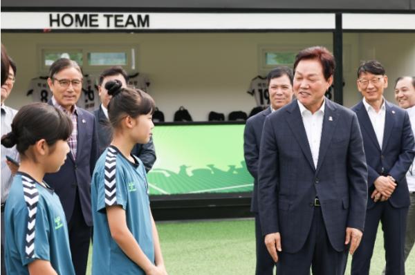 [종합뉴스채널, 김경석기자] 박완수 경남도지사가 진주여중 축구부를 찾아 선수들을 격려했다.