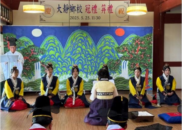[종합뉴스채널, 김현성기자] 서귀포시는 5월 25일 성년의 날을 기념하여 안덕면 소재 대정향교에서 지역 청소년 11명과 향교 유림, 지역 주민 등 30여 명이 참석한 가운데 성년의 날 기념, 전통성년례를 개최했다고 밝혔다.