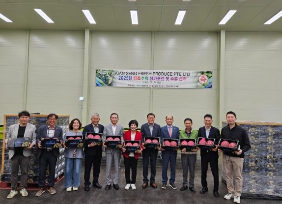 [종합뉴스채널, 신철훈기자] 합천군은 25일 율곡면 애플수박공동선별장에서 ‘애플수박 싱가포르 첫 수출 선적식’을 개최했다.