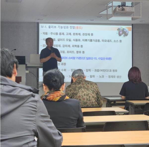 △1회차 ‘올리브 재배 개요 및 품종별 특성’ △2회차‘올리브 재배환경과 병해충’ △3회차 ‘올리브 생육특성과 재배 기술’ △4회차 ‘거제올리브 현황과 전망’등의 세부과정으로 진행됐다.
