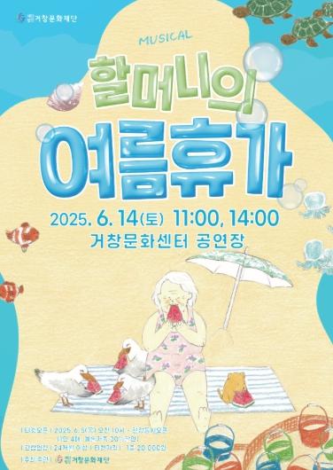 (재)거창문화재단은 오는 6월 14일 오전 11시와 오후 2시에 거창문화센터 공연장에서 가족뮤지컬 ‘할머니의 여름휴가’를 개최한다.