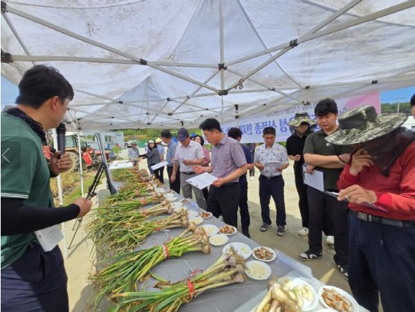 이날 현장에서는 조직배양 씨마늘 외에도 도 농업기술원이 개발한 신품종 마늘 ‘해산’ 등 5종에 대한 품평회가 함께 진행돼 농업인의 큰 관심을 끌었다.