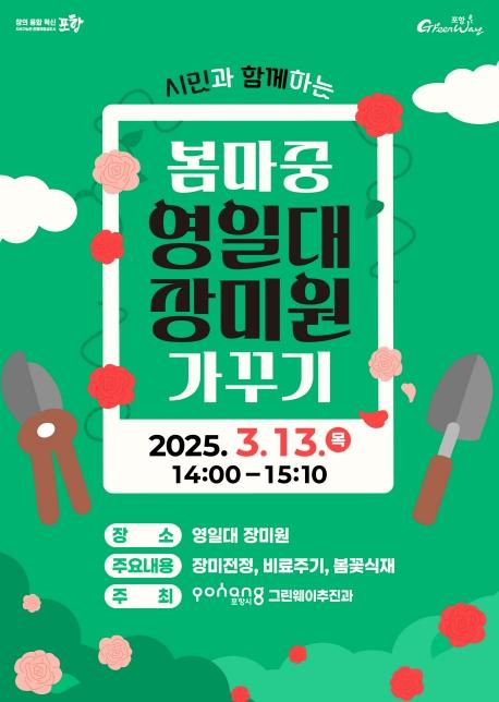 포항시는 지역 대표 명소인 영일대장미원에서 오는 13일 시민과 함께하는 ‘봄 마중 영일대장미원 가꾸기’ 행사를 개최한다.