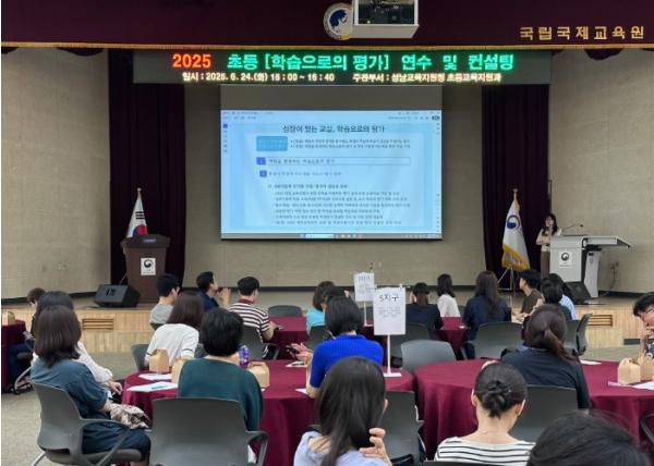 성남교육지원청 한양수 교육장은 “이번 연수와 컨설팅은 평가를 단순한 결과가 아닌 학습의 출발점으로 전환하는 계기가 될 것이며, 이를 통해 교사의 평가 전문성 신장과 학교별 실행력 확보, 나아가 학생의 성장과 학력 향상을 동시에 실현하는 평가 문화 조성을 위해 더욱 노력하겠다”고 밝혔다.