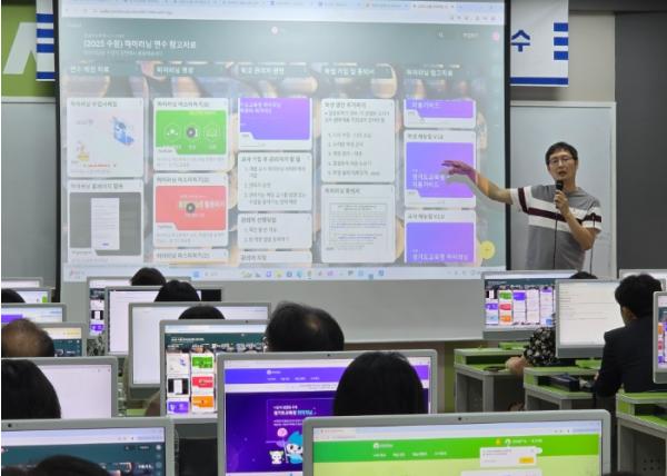 이번 연수는 AI 기반 교수‧학습 플랫폼인 ‘하이러닝(Hi-Learning)’을 학교 현장에 안정적으로 도입하고, 관리자들의 디지털 전환 역량을 강화하기 위해 마련됐으며, 하이러닝 기능 체험과 수업 설계 실습 중심으로 구성됐다.