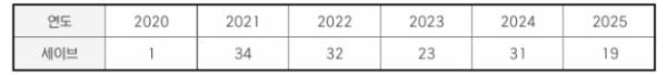 [종합뉴스채널, 김경석기자] KIA 정해영이 역대 3번째 5시즌 연속 20세이브 달성에 세이브 1개만 남겨두고 있다.