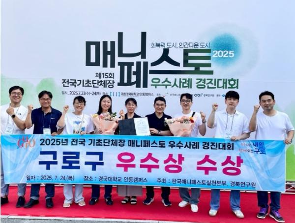 [종합뉴스채널, 박정혜기자] 구로구가 7월 24일 경북 안동에서 열린 ‘2025년 전국 기초단체장 매니페스토 우수사례 경진대회’에서 공동체 강화 분야 ‘우수상’을 수상했다.