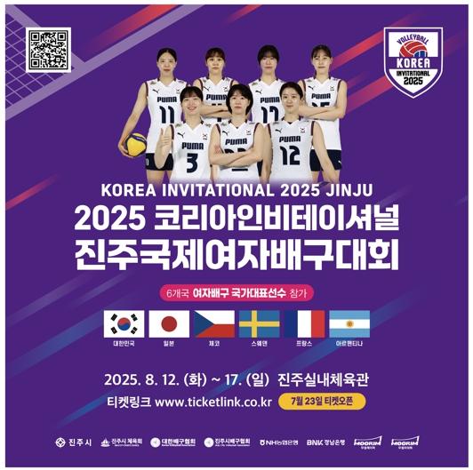 [종합뉴스채널, 김경석기자] 진주시는 오는 8월 12일부터 17일까지 진주실내체육관에서 열리는 ‘2025 코리아인비테이셔널 진주국제여자배구대회’의 입장권 판매가 23일(5일 전일권)부터 시작됐다고 밝혔다. 전일권 예매는 7월 23일 오후 2시부터 27일까지 진행됐으며, 일일권 예매는 7월 28일 오후 2시부터 시작된다.
