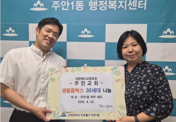 [종합뉴스채널, 김현성기자] 미추홀구 주안1동은 관내 주안장로교회 청년국으로부터 6만 원 상당의 생필품 상자를 후원받았다고 1일 밝혔다.