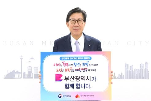 박형준 부산시장은 저출생과 고령화 등 인구구조 변화로 인한 문제를 알리고 사회적 인식을 개선하기 위한 '인구문제 인식개선 릴레이 캠페인'에 동참했다.